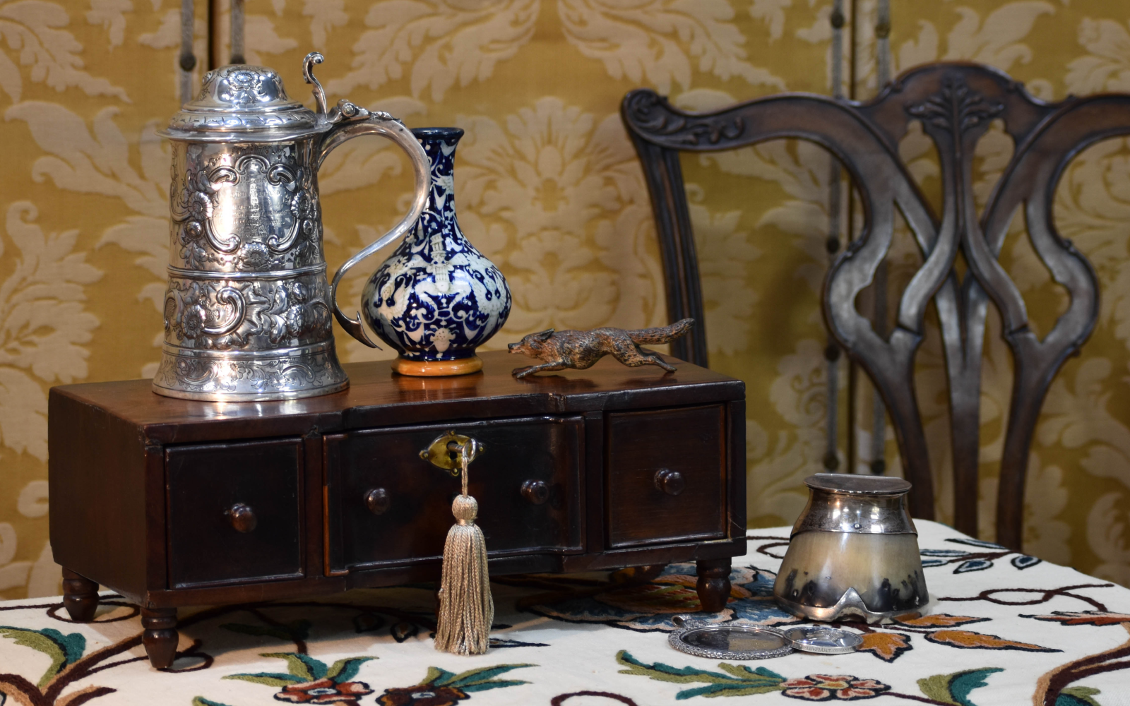 Four Rare 17th Century Garter Stall hand painted brass plaques.